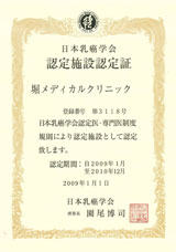 堀メディカルクリニックは、「日本乳癌学会」の認定を受けています。