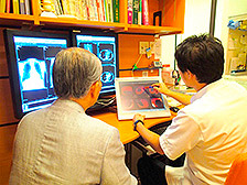 検査後、更衣を済ませたらすぐに医師と一緒にモニターを見ながら結果説明を受けます。